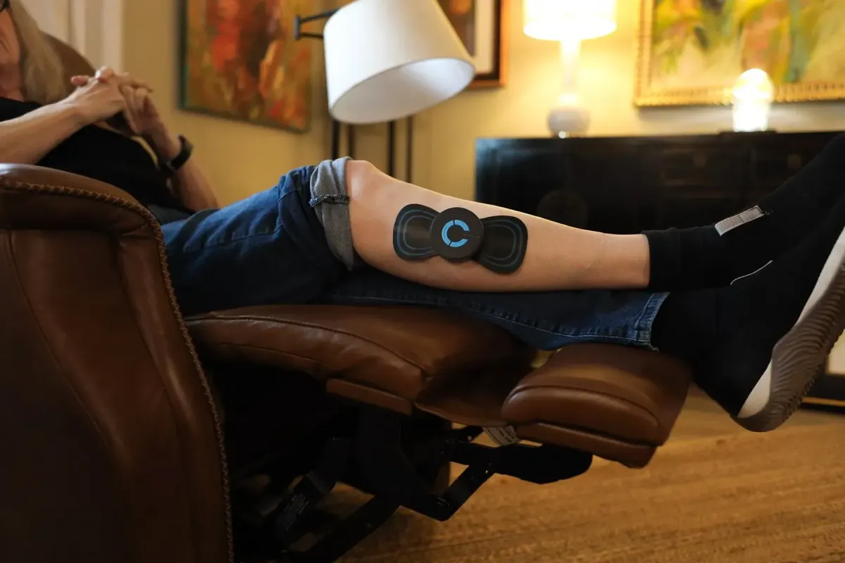 And then you just place the sticky pad on your foot or calf muscle, select the mode and the intensity level of the massageβ¦ And thatβs it!